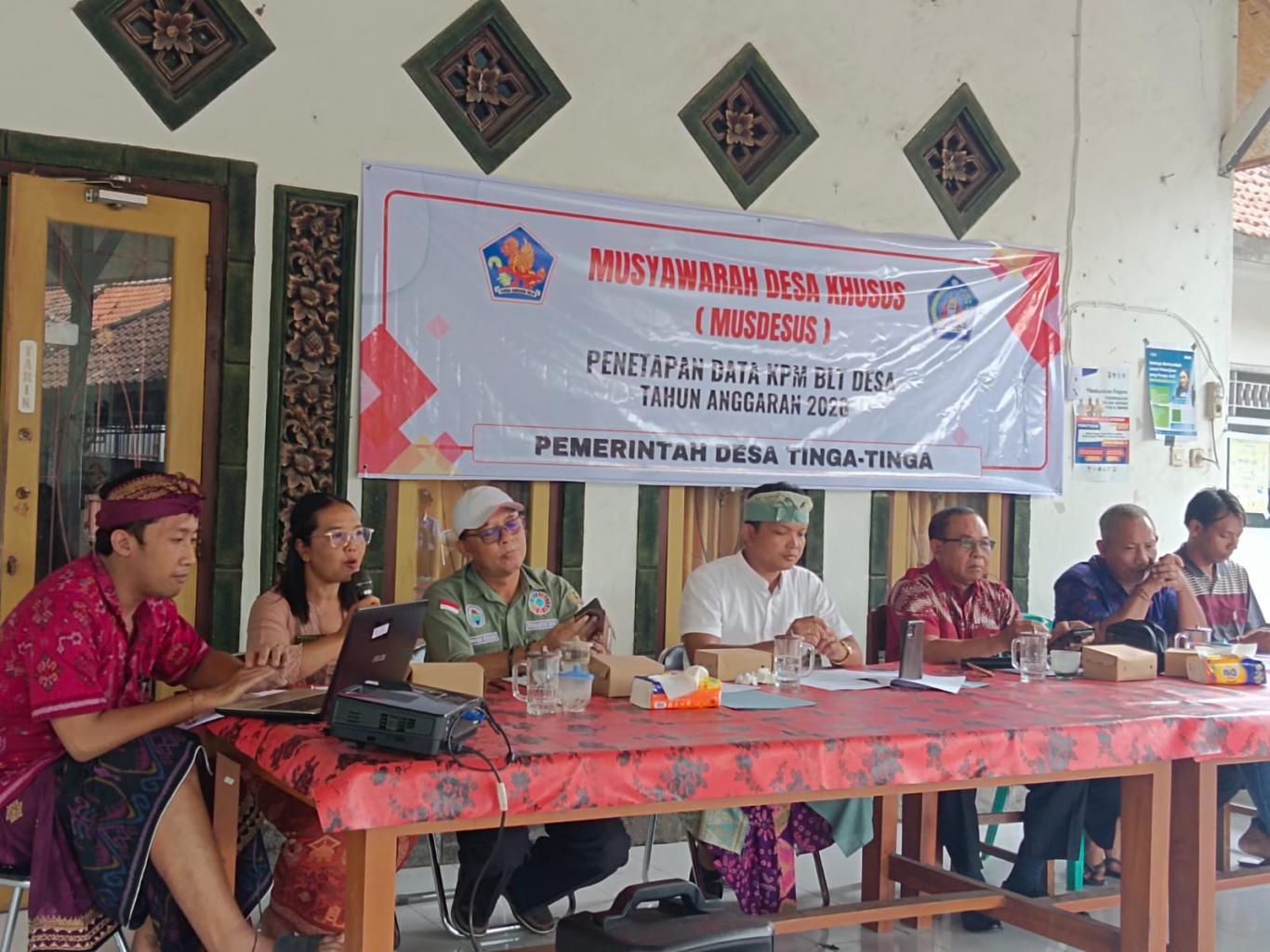 Kamis, 15 Januari 2026 — Musyawarah Desa Khusus (Musdesus) tentang Penetapan KPM BLT Desa Tahun 2026 dan Musyawarah Desa tentang Laporan Pertanggungjawaban (LPJ) Realisasi APBDesa Tahun 2025 dihadiri Perbekel, Perangkat Desa dan Staf, Ketua BPD dan Anggota BPD, Perwakilan Camat Gerokgak, Pendamping Desa Kecamatan Gerokgak, Pendamping Lokal Desa Tinga-tinga, Kelian Subak Desa Tinga-tinga, Ketua LPM, Karang Taruna, Tenaga Pendidik, Kader Posyandu, Ketua Kelompok dan Tokoh Masyarakat di Kantor Perbekel Tinga-tinga.