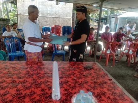 Agenda pertama dilaksanakan di Banjar Dinas Juntal, Desa Tinga-tinga, Kecamatan Gerokgak, dengan penyerahan Akta Kematian atas nama Luh Kerti, Kartu Keluarga (KK) baru atas nama Ketut Mawit, serta Dana Sungkawa kepada keluarga yang bersangkutan.
