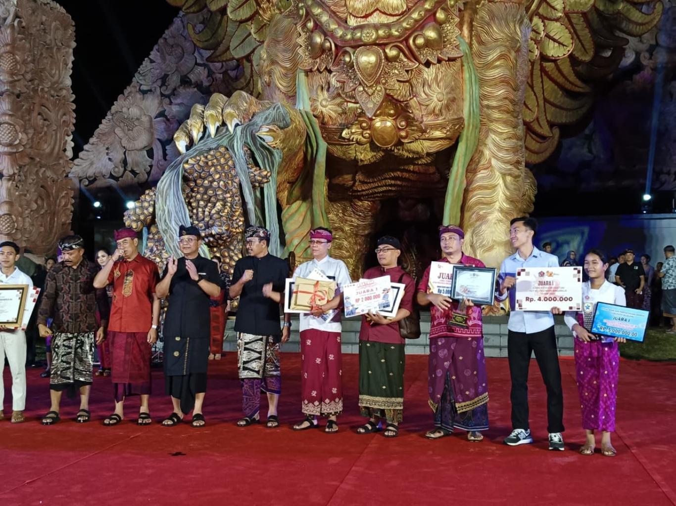 Senin, 30 Maret 2026 – Penyerahan piala dan piagam penghargaan kepada tim pemenang Lomba Cerdas Cermat antar perangkat desa se-Kabupaten Buleleng dengan tema “Cerdas Regulasi, Tegas Antikorupsi” oleh Bupati Buleleng, yang berlangsung di Ruang Terbuka Hijau Bung Karno.